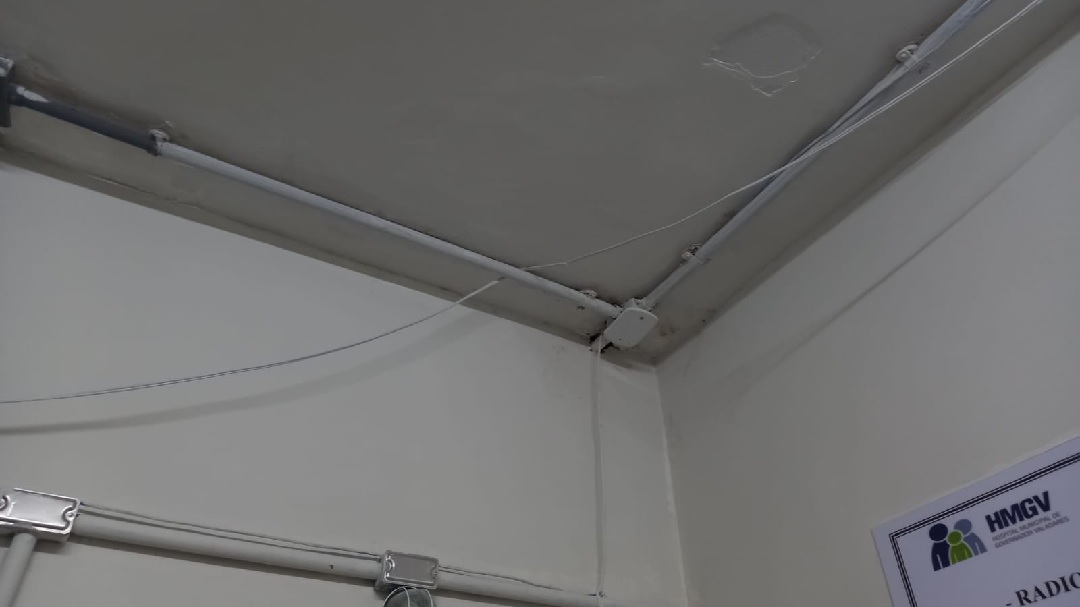 Na sala de radiologia, explica Sandra Perpétuo, permanecem todos os problemas listados pelo Ministério Público para serem corrigidos, tais como fiação exposta, cerâmicas quebradas, infiltrações e outros.