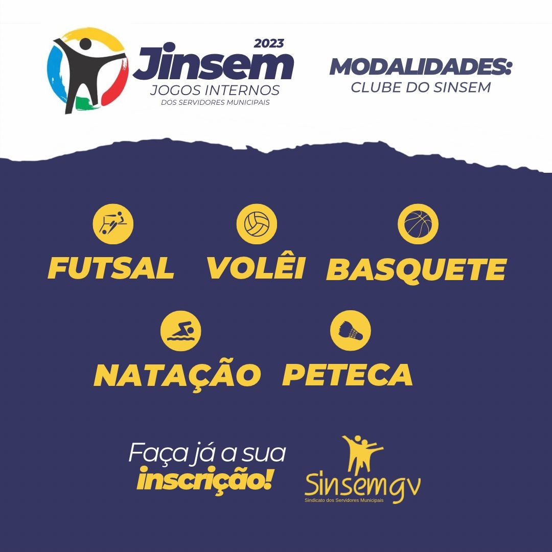 Estão abertas a partir desta terça-feira (2) e vão até o dia 31 de maio as inscrições para o Jinsem-GV (Jogos Internos do Sindicato dos Servidores Municipais de Governador  Valadares). A edição 2023 será realizada nos dias 14 a 30 de junho.