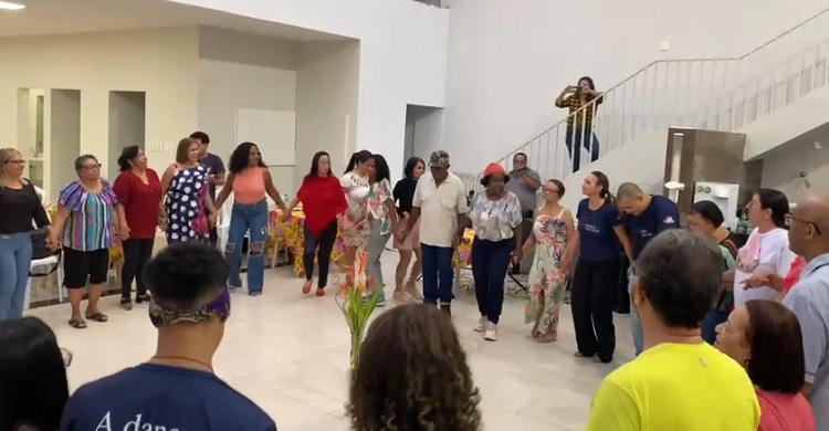 Teve ainda o momento Dança Circular, com o time da UFJF-Campus Valadares, que já desenvolve a atividade na sede do sindicato, duas vezes por semana.