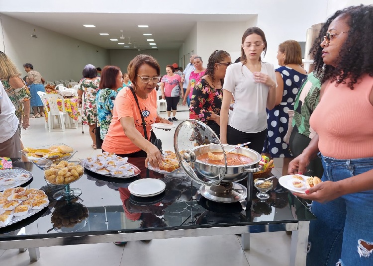 Para repor as energias, uma mesa repleta de variedades, com sanduíches, bolos, salgados, pães de queijo, doces, tortas, biscoitos, cachorros-quentes, sucos e outras gostosuras.