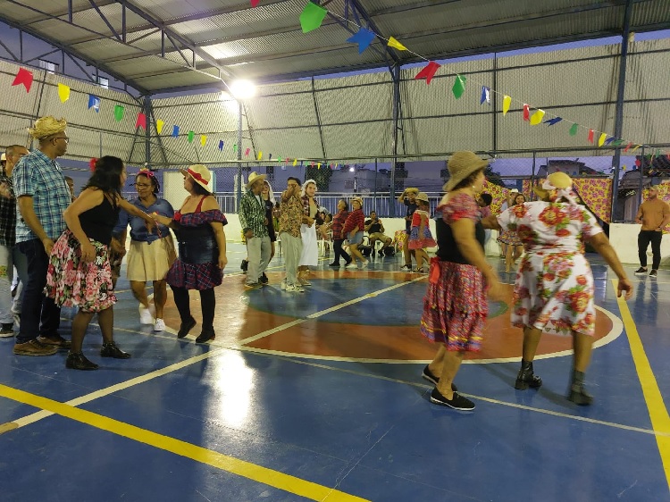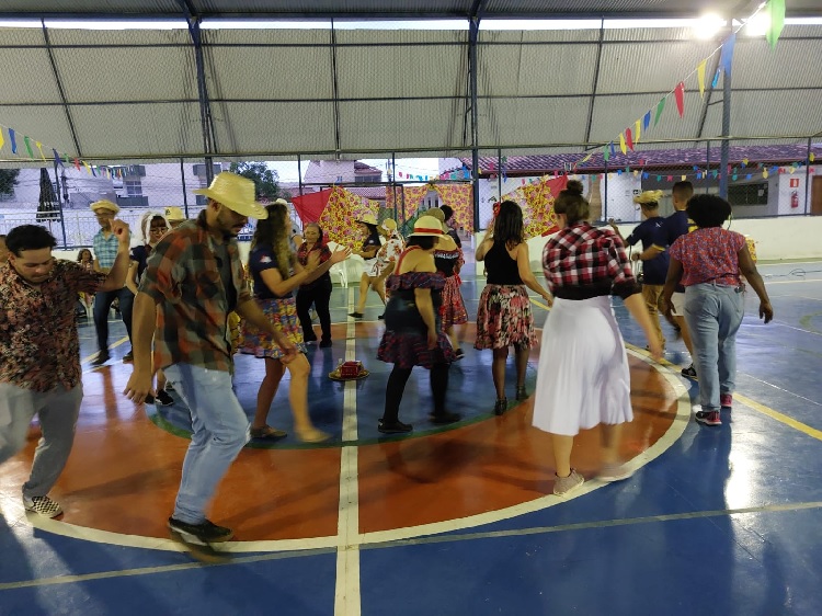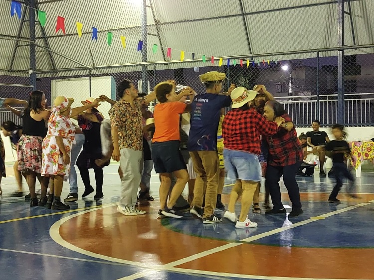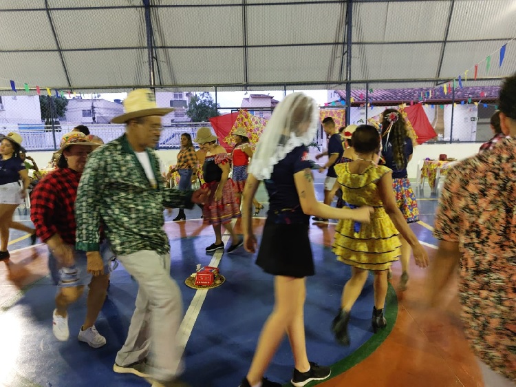 Comida típica, bandeirinhas, música, alegria e muita dança coordenada pela professora Raquel Borges foram os destaques do Arraiá Dança Circular UFJF realizado na tarde deste sábado (17), no Clube do Sinsem.