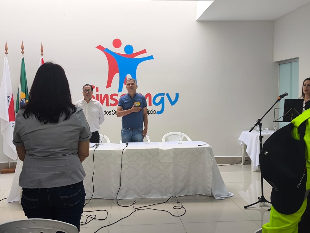 Sindicato entrega reivindicações da categoria e candidato Sandro assina compromisso com os servidores. Foto: SinsemGV