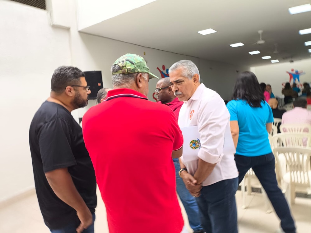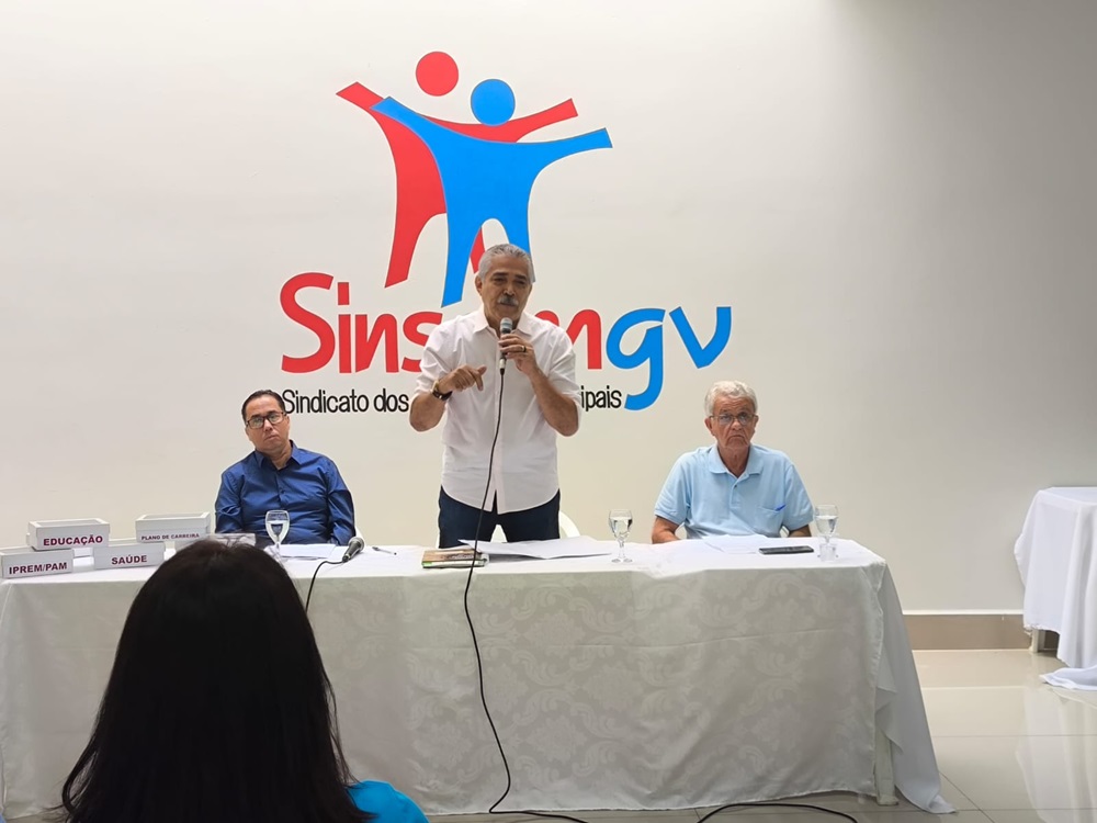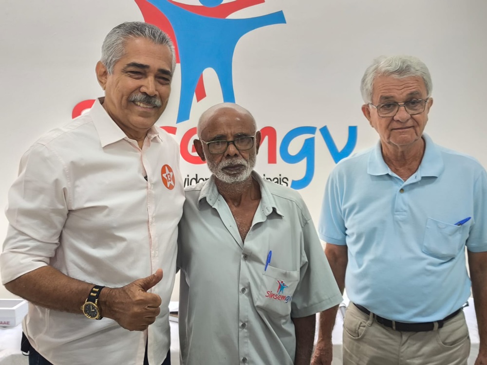 O presidente interino do Sinsem-GV, Nelinton Gomes, entregou oficialmente aos candidatos uma pauta de reivindicações dos servidores e reforçou a necessidade de compromisso de Léo Monteiro e Dr. Luciano com as demandas da categoria.