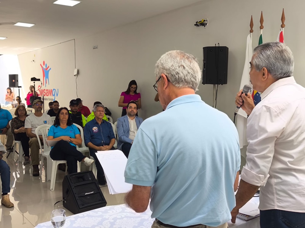 O presidente interino do Sinsem-GV, Nelinton Gomes, entregou oficialmente aos candidatos uma pauta de reivindicações dos servidores e reforçou a necessidade de compromisso de Léo Monteiro e Dr. Luciano com as demandas da categoria.