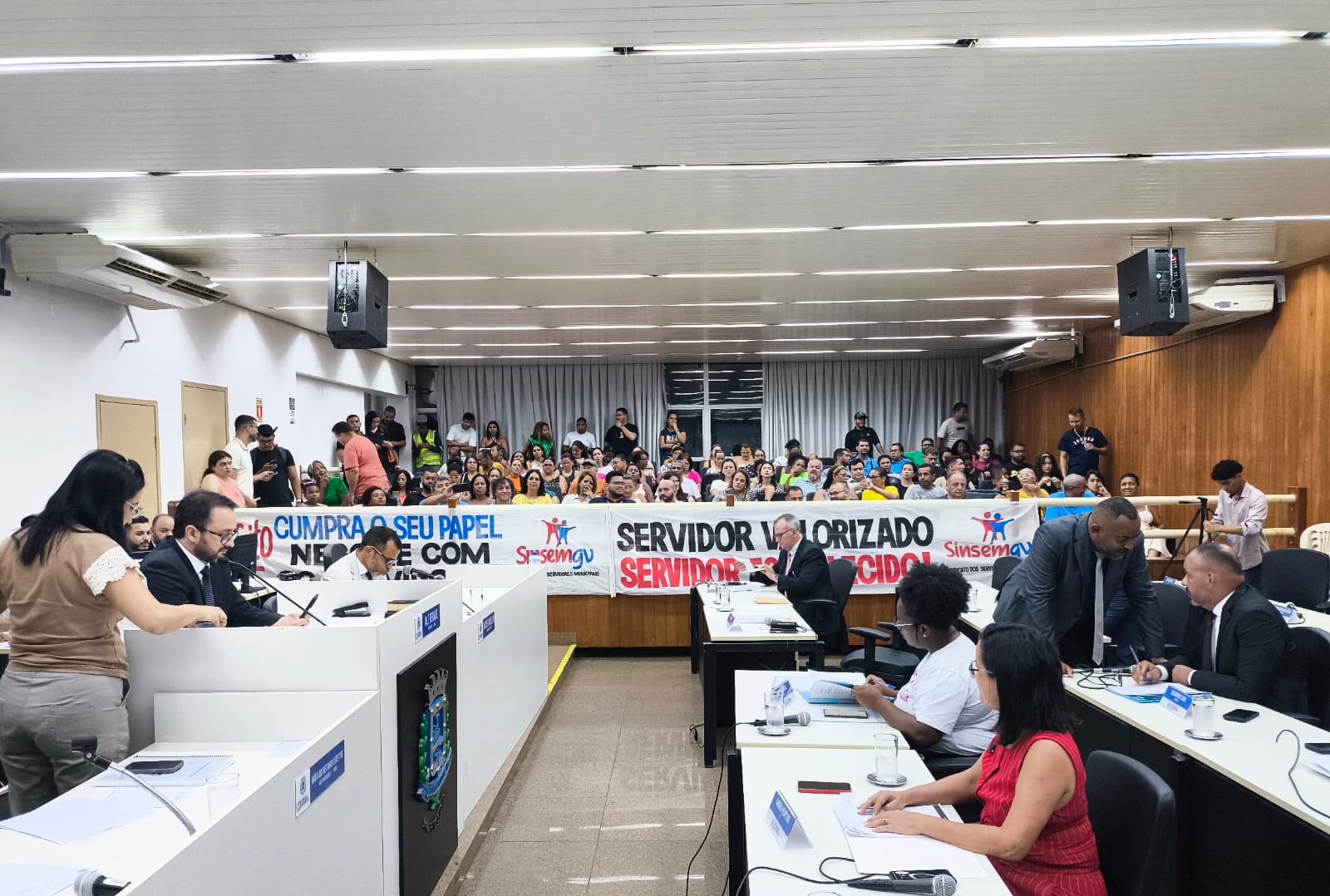 Após o ato em frente à prefeitura, os servidores seguiram para o plenário da Câmara Municipal, onde acompanharam a primeira reunião do mês. Durante a sessão, a sindicalista e vereadora Sandra Perpétuo utilizou a tribuna para mais uma vez cobrar o cumprimento da decisão do STJ, que determina o pagamento dos reajustes das tabelas salariais sem possibilidade de recurso.