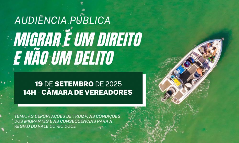 A presidente do Sinsem-GV e vereadora Sandra Perpétuo participará nesta sexta-feira (19), às 14h, de audiência pública da Comissão do Trabalho, da Previdência e da Assistência Social da ALMG, na Câmara Municipal de Governador Valadares. O objetivo é debater a situação dos trabalhadores migrantes do Vale do Rio Doce, especialmente os que foram deportados dos Estados Unidos, e propor medidas de apoio às famílias impactadas.