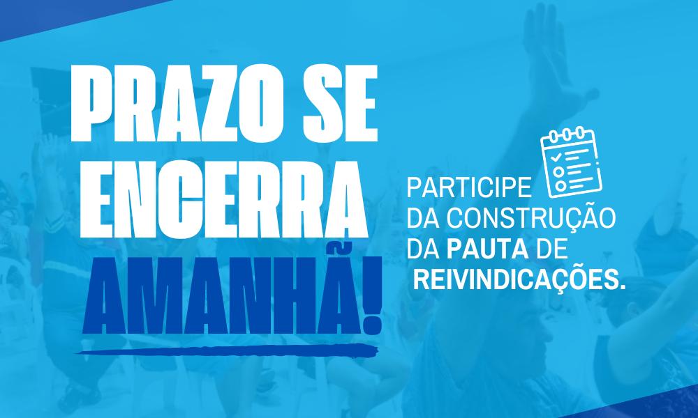 Servidores municipais têm até amanhã, 30 de setembro, para enviar suas sugestões à pauta de reivindicações da Campanha Salarial 2026 do Sinsem-GV. O prazo, que inicialmente terminaria no dia 17, foi prorrogado para ampliar a participação dos trabalhadores e garantir uma pauta ampla e representativa.