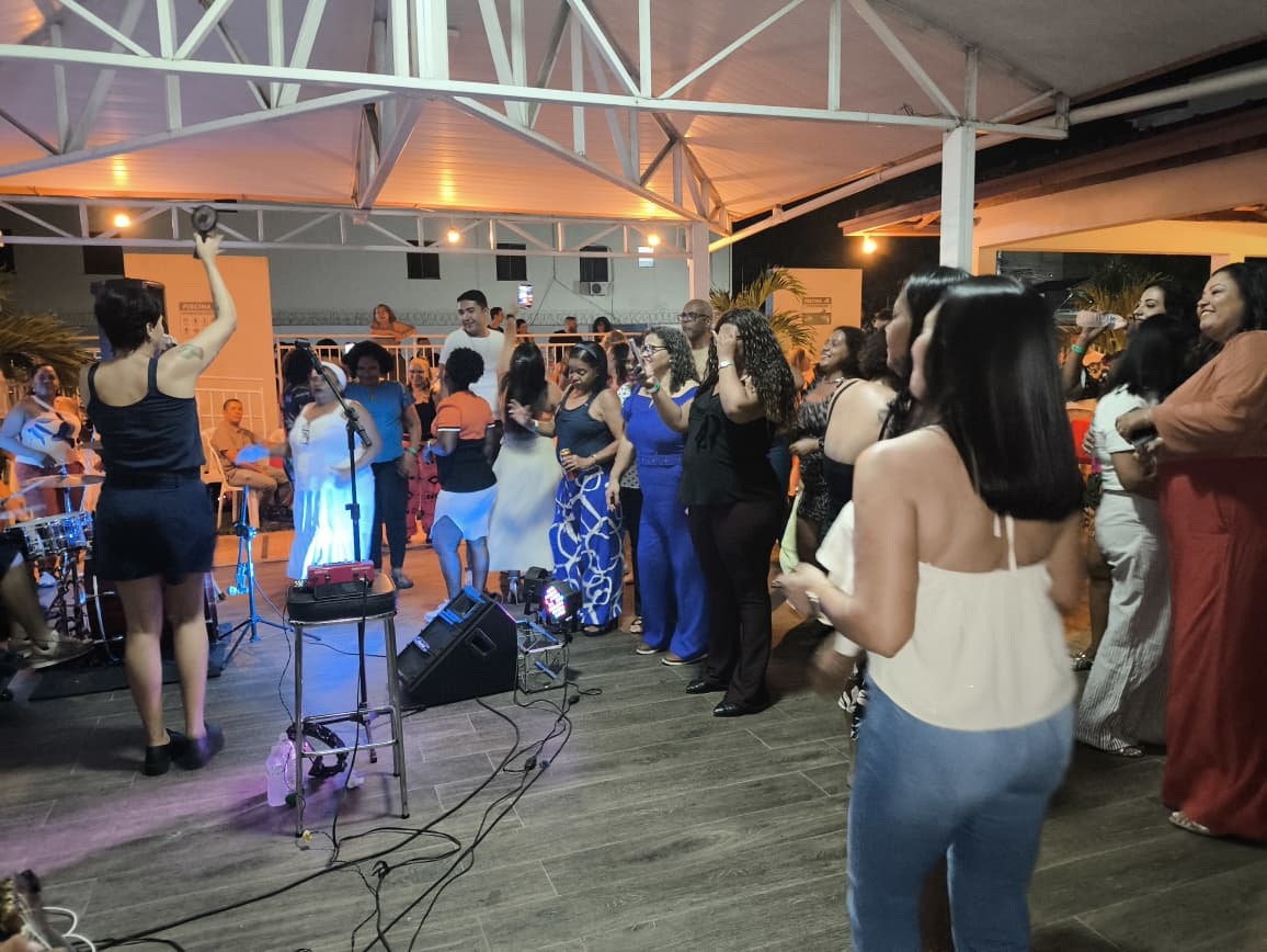 A cantora Grazzi Lopes embalou a noite com um repertório variado, marcando o encerramento da série de encontros promovidos pelo sindicato ao longo do mês.