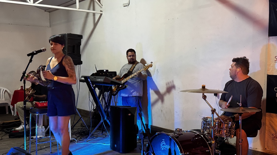 A cantora Grazzi Lopes embalou a noite com um repertório variado, marcando o encerramento da série de encontros promovidos pelo sindicato ao longo do mês.